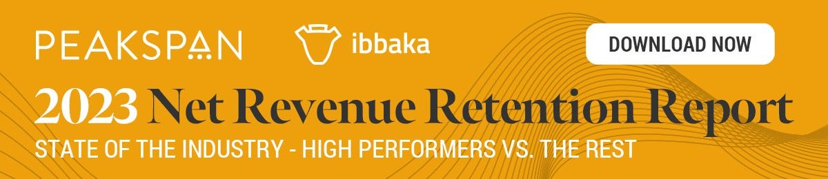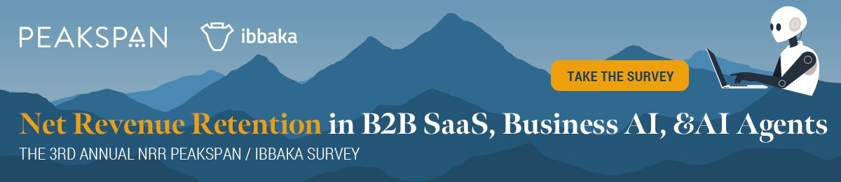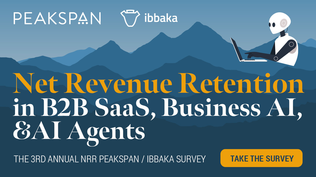 PeakSpan Capital and Ibbaka are running a short survey (6-8 minutes) to get a clear picture of how B2B SaaS leaders like you are approaching Net Revenue Retention, what's driving churn in your business, and where the biggest opportunities lie for 2025 retention and expansion.